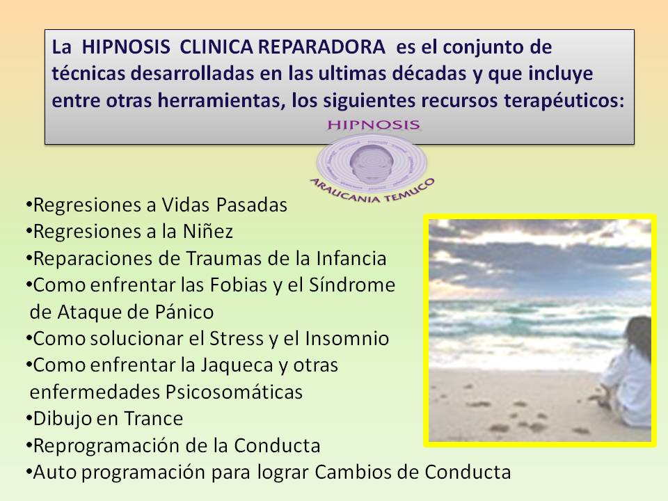 La HIPNOSIS CLÍNICA REPARADORA es el conjunto de técnicas desarrolladas en la última década y que incluye entre otras herramientas, los siguientes recursos terapéuticos: